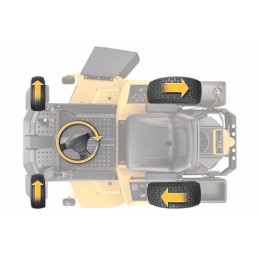 De plus, la double transmission permet un contrôle indépendant des roues arrière lors de la rotation à 360°.